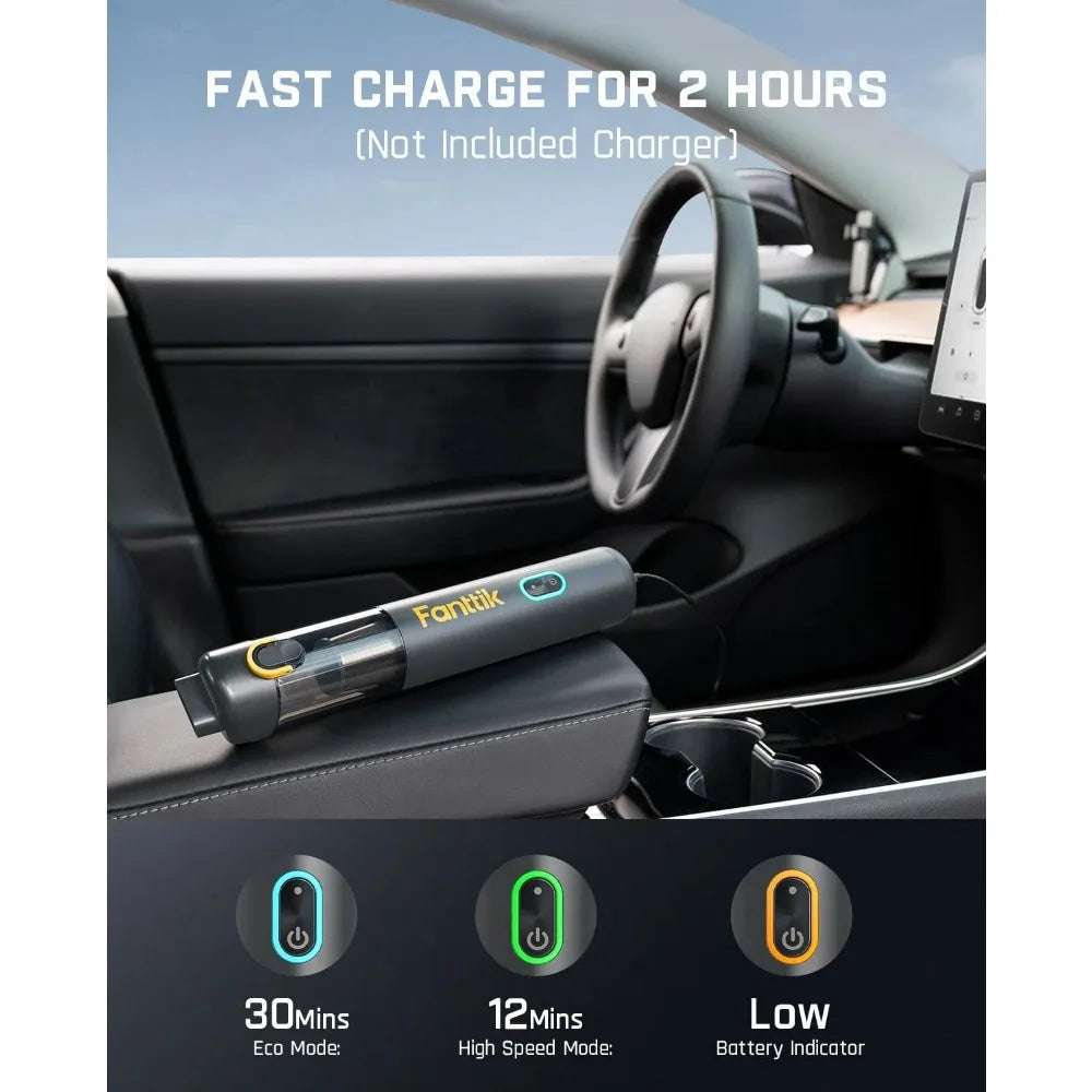The Fanttik Slim V8 Mate delivers an impressive suction power of 12000Pa, making it ideal for removing dust, dirt, and pet hair effortlessly. Its powerful performance ensures your car remains spotless, even in hard-to-reach areas.